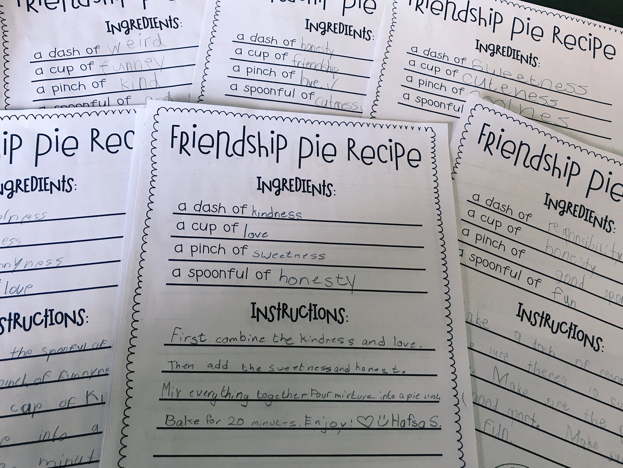 We recommend making some friends. Its different then the amish friendship cake recipe as it doesnt require a starter. Use the poster provided to create a bright display in your classroom.